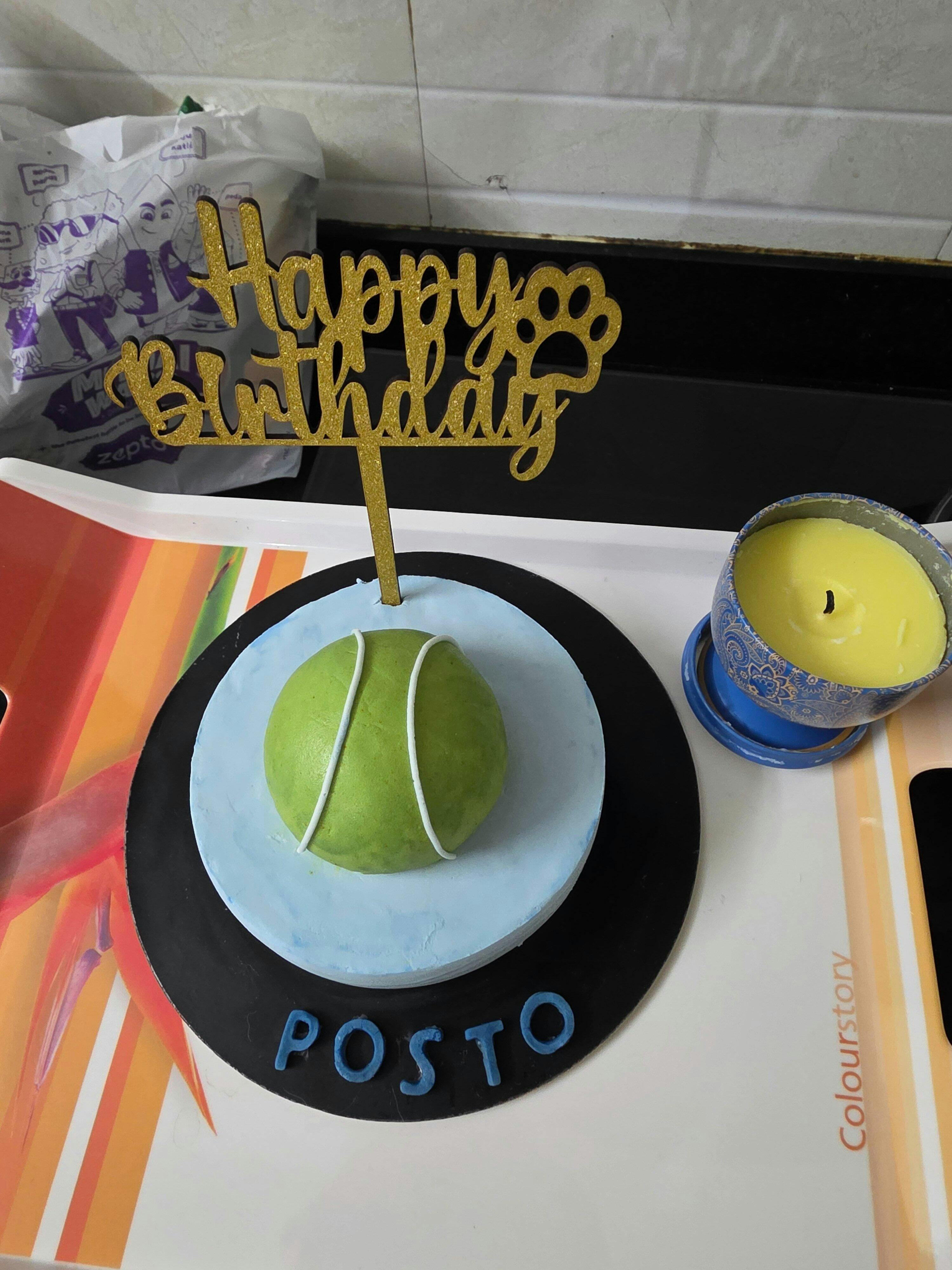 This Tennis Ball Shaped Cake for dogs, available in sizes 400gm, 600gm and 750gm, is a perfect treat for medium-sized dogs or for sharing during dog celebrations. It comes in a variety of flavors, including Chicken, Chicken & Oats, Chicken Liver, and more, all adorned with a pet-safe frosting.